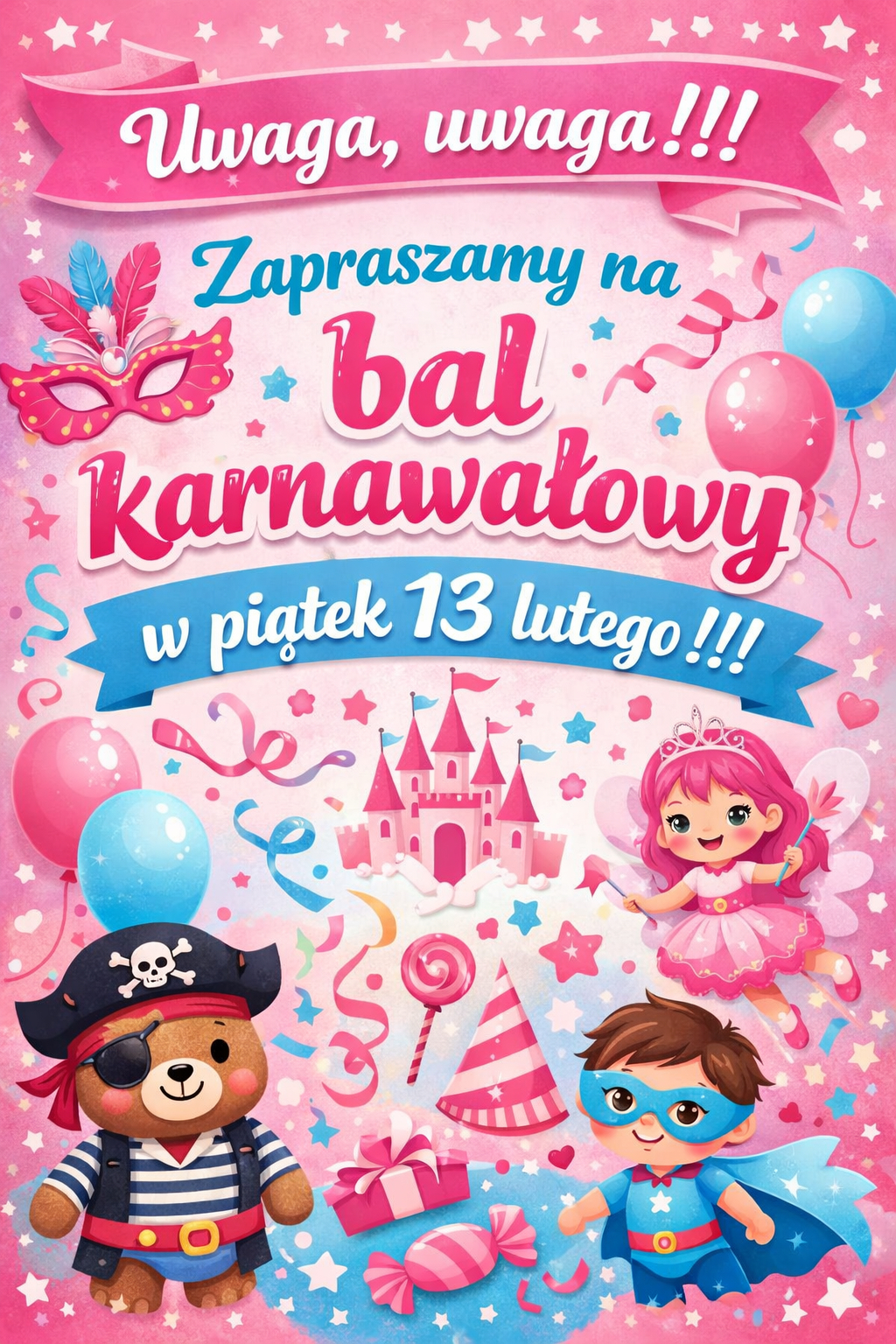 W piątek 13 lutego 2026 roku zaprosiliśmy wszystkie przedszkolaki na Bal Karnawałowy w Przedszkolu Miejskim nr 125. Bal prowadziła nasza ulubiona Kraina Gagatka.