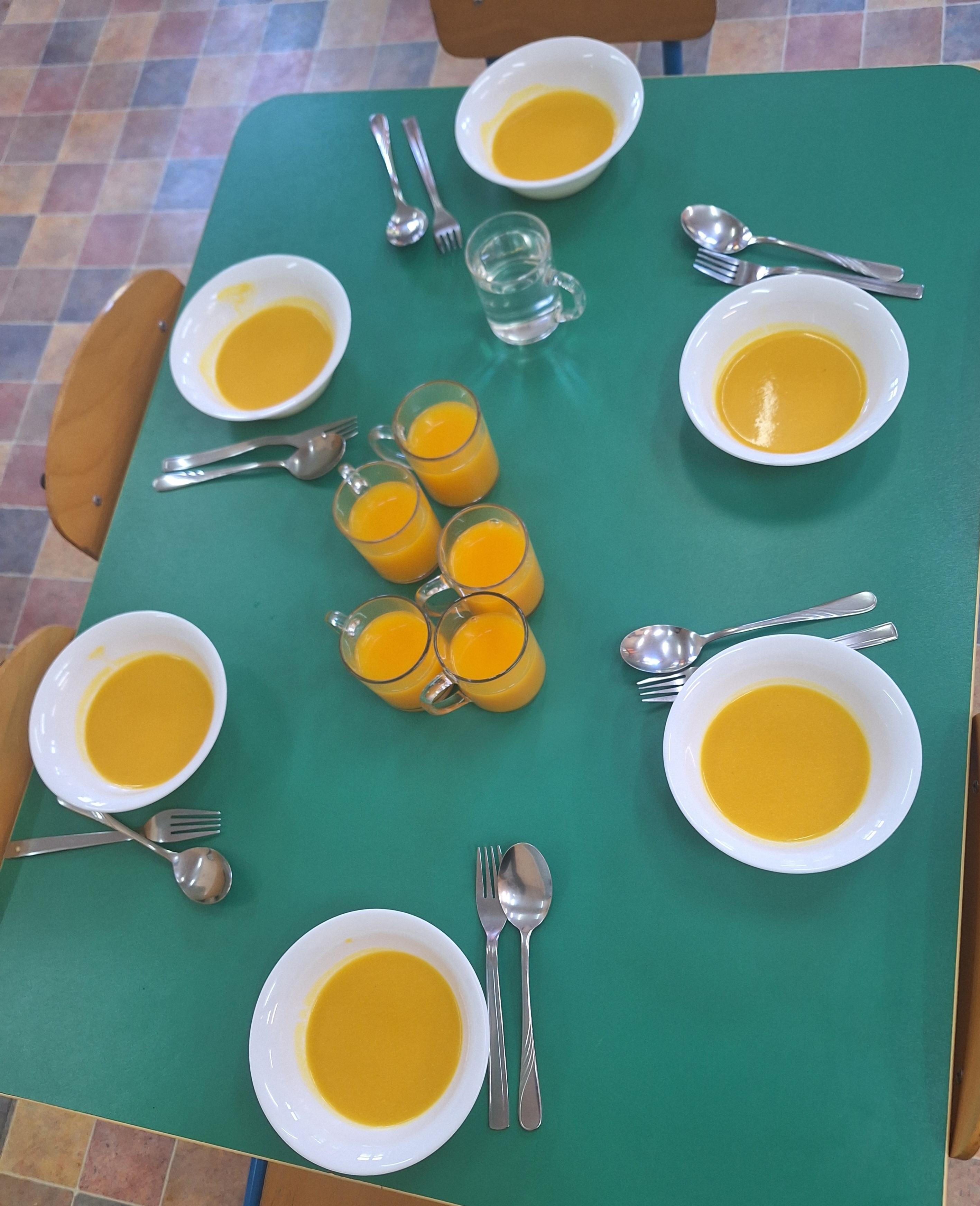 A na obiad zjadły bardzo zdrową zupę – oczywiście dyniową!