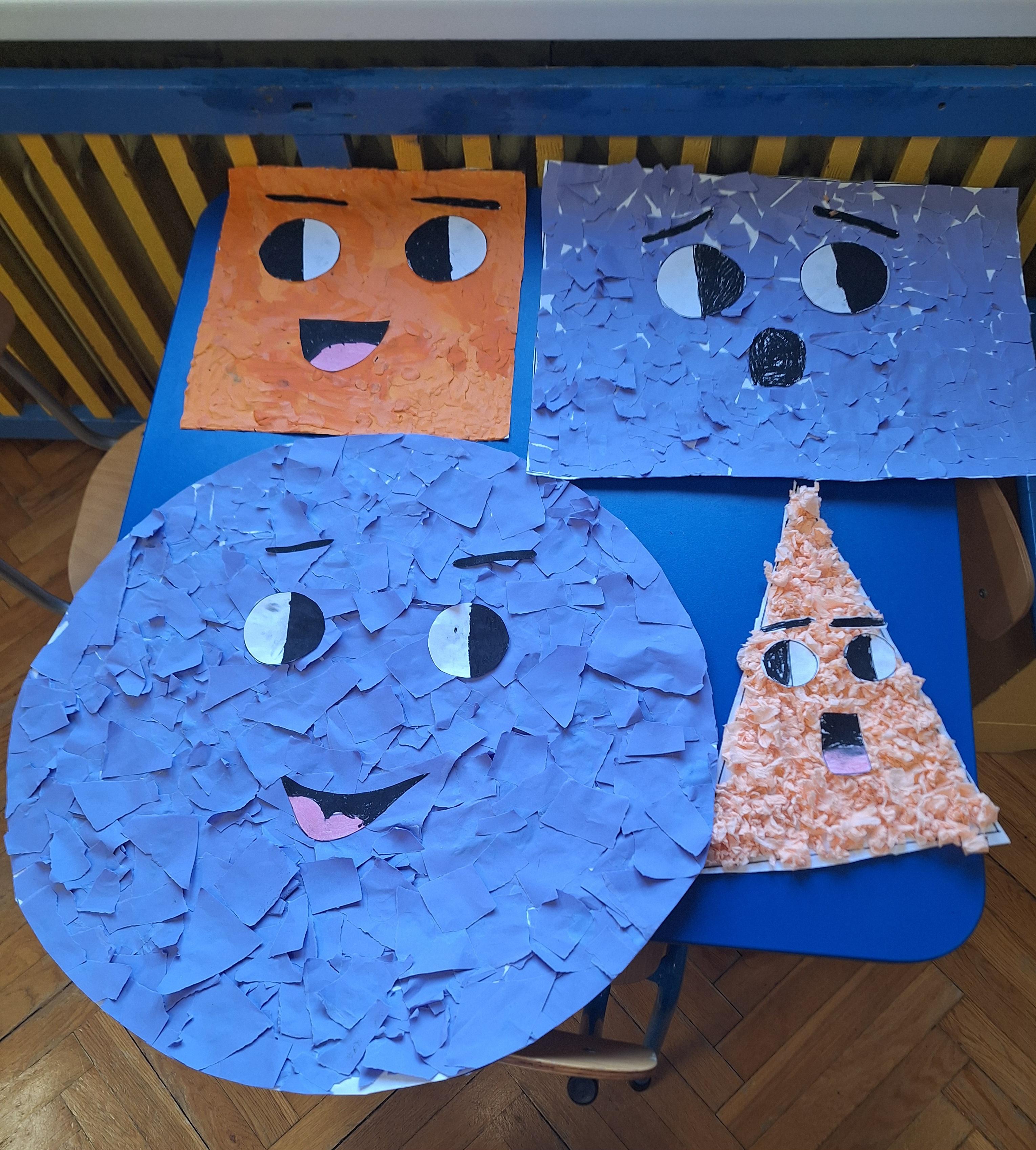 18 marca w naszej grupie obchodziliśmy Dzień Figur Geometrycznych. Poprzez zabawę dzieci na zajęciach utrwalały znajomość figur geometrycznych. Odszukiwały i nazywały kształty figur, odnajdywały przedmioty z otoczenia we wskazanych kształtach, układały obrazki z figur geometrycznych, odwzorowywały kształty figur z wykorzystaniem różnorodnych klocków. Na koniec dzieci w grupach wyklejały materiałami plastycznymi szablony figur geometrycznych.