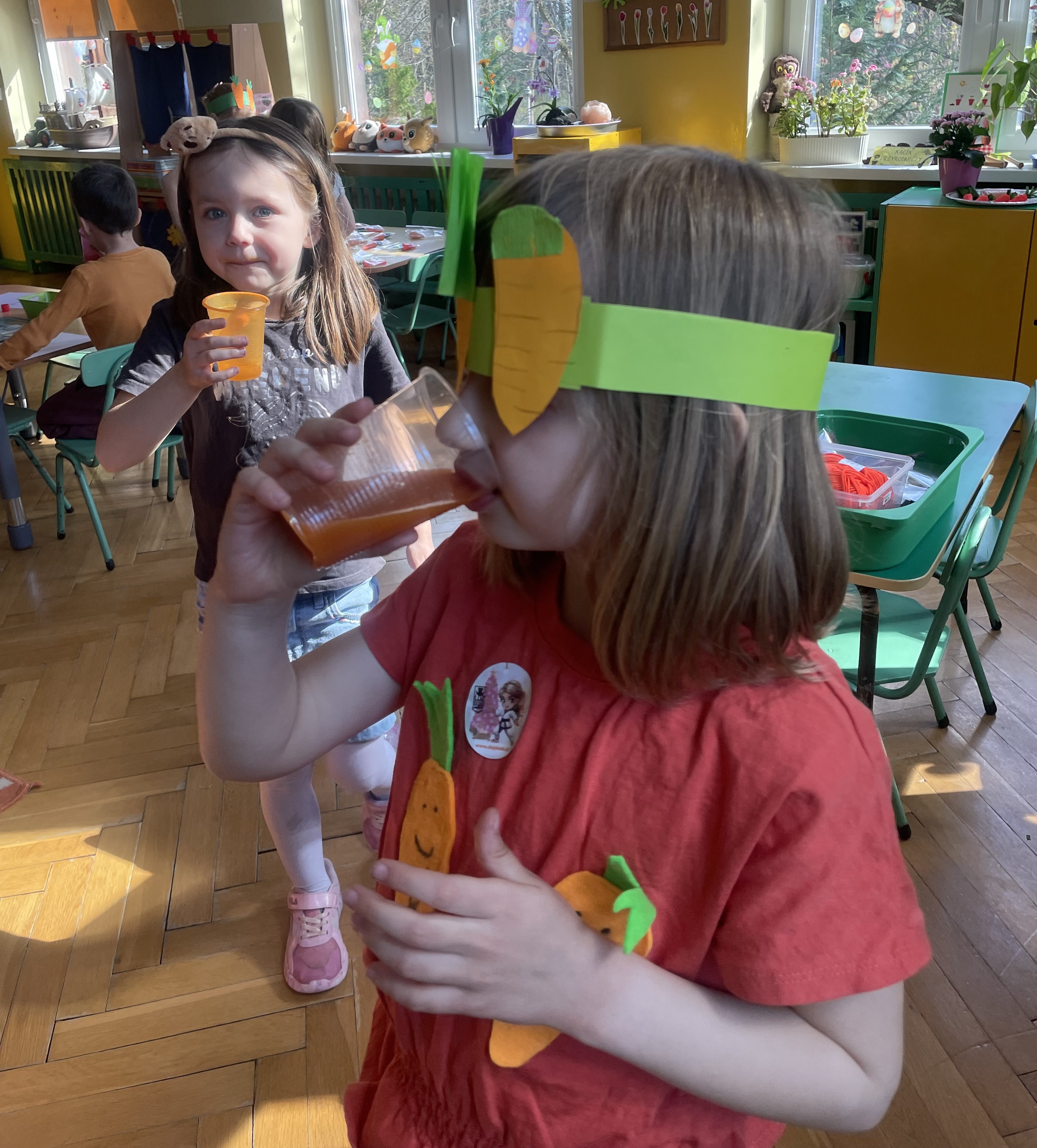 Dnia 4 kwietnia w naszym przedszkolu odbyło się wyjątkowe święto – Dzień Marchewki. Tego dnia dzieci przyszły ubrane na pomarańczowo, aby jeszcze bardziej wczuć się w klimat wydarzenia i podkreślić znaczenie tego zdrowego warzywa w naszej diecie. Obchody tego święta rozpoczęły się od oglądania filmu edukacyjnego o marchewce, dzięki któremu przedszkolaki dowiedziały się wielu ciekawostek o jej właściwościach zdrowotnych, sposobach uprawy oraz roli w codziennym jadłospisie. Kolejnym elementem naszego marchewkowego dnia było kodowanie, oczywiście marchewek, dzieci miały także okazję ulepić marchewki z modeliny, rozwijając swoją kreatywność i zdolności manualne. Marchewka pojawiła się w naszym jadłospisie, wypiliśmy sok oraz smakowaliśmy marchewkę na surowo a Pan Kucharz i Panie Kucharki przygotowały nam pyszną marchewkową zupę. Dzień Marchewki upłynął w radosnej atmosferze, pełnej zabawy i nauki. Dzięki takim wydarzeniom dzieci nie tylko świetnie się bawią, ale także uczą się zdrowych nawyków, rozwijają kreatywność i współpracują w grupie. To święto na długo pozostanie w naszej pamięci