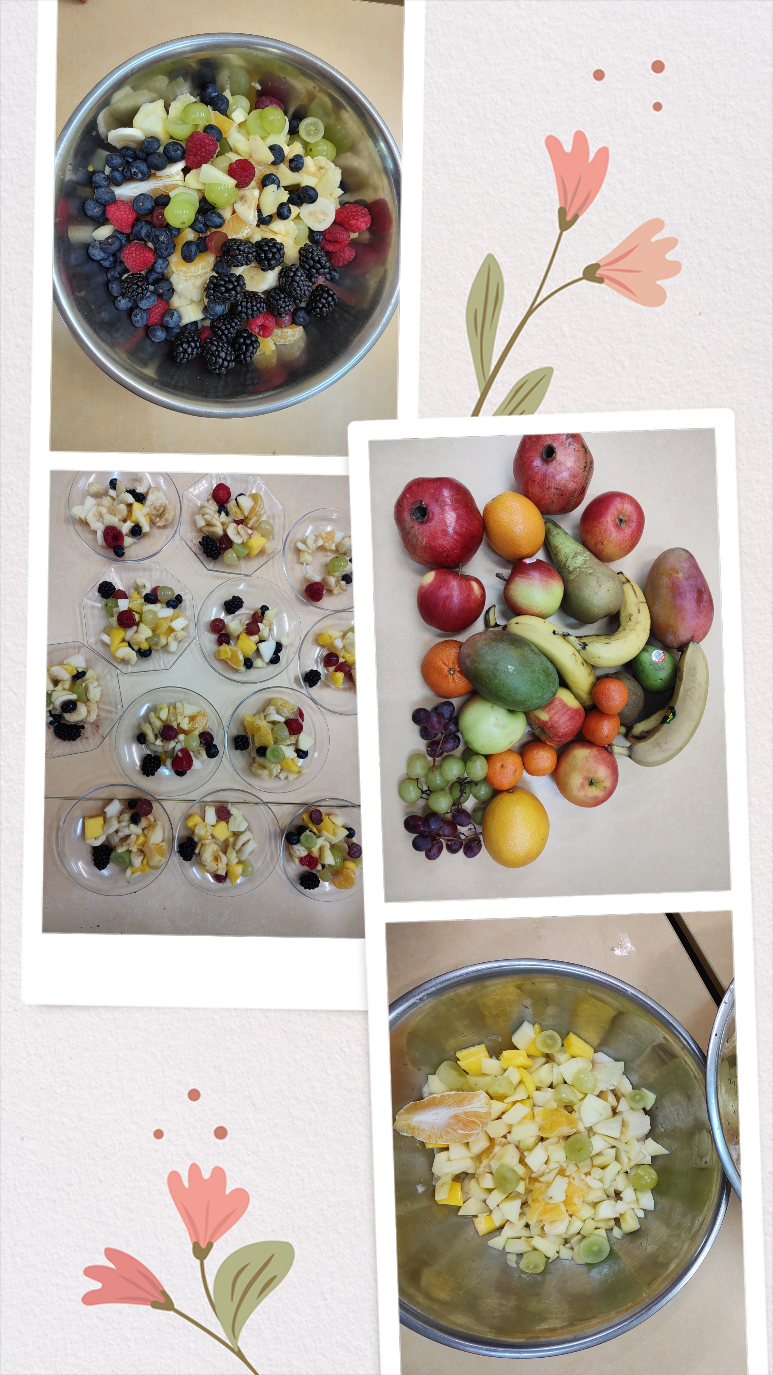 20 października obchodziliśmy Międzynarodowy Dzień Owoców i Warzyw. To dobra okazja, aby porozmawiać o istotnej roli tych produktów w naszej diecie. W piramidzie zdrowego stylu życia zajmuje drugie miejsce, zaraz po aktywności fizycznej. Możemy je spożywać na surowo, ugotowane czy w formie przetworów. Dzieci z najmłodszej grupy poznały różne owoce i warzywa. Próbowały rozpoznać je za pomocą dotyku i zapachu. Wysłuchały wiersz Jana Brzechwy pt. "Na straganie". Z przyniesionych owoców zrobiliśmy sałatkę, którą dzieci zjadły z wielkim apetytem.