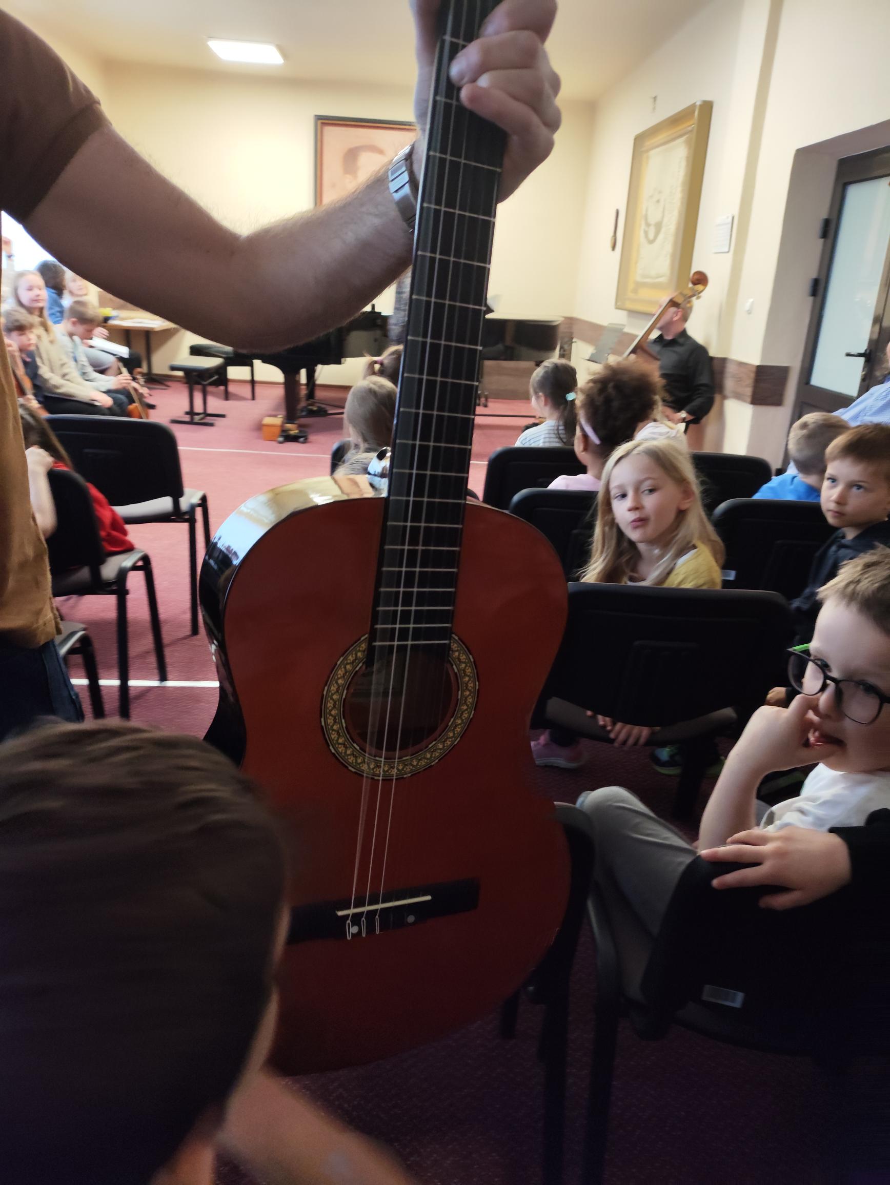W poniedziałek 14 kwietnia Skrzaty wraz z paniami wybrały się na pieszą wycieczkę do Szkoły Muzycznej przy ul. Szpitalnej. Miały okazję posłuchać koncertu przygotowanego przez dzieci uczące się gry na wielu instrumentach. Podziwiały talenty starszych kolegów oraz koleżanek, następnie przedszkolaki mogły z bliska przyjrzeć się dokładnie instrumentom oraz dotknąć ich. Na zakończenie naszej wizyty w szkole zrobiliśmy sobie wspólne zdjęcie na tle pięknego fortepianu.