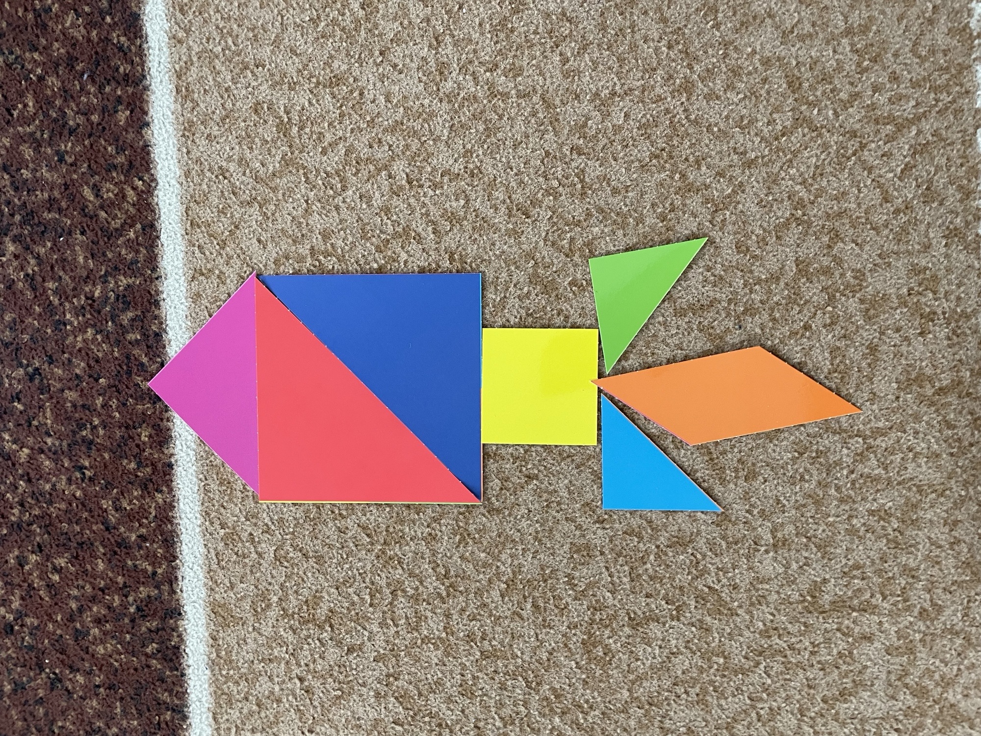TANGRAM to klasyczna układanka logiczna, w jej skład wchodzi 7 elementów (kwadrat, równoległobok i 5 różnych trójkątów). Wykorzystując je wszystkie, można ułożyć niezliczoną ilość sylwetek ludzi, zwierząt, przedmiotów i figur geometrycznych.